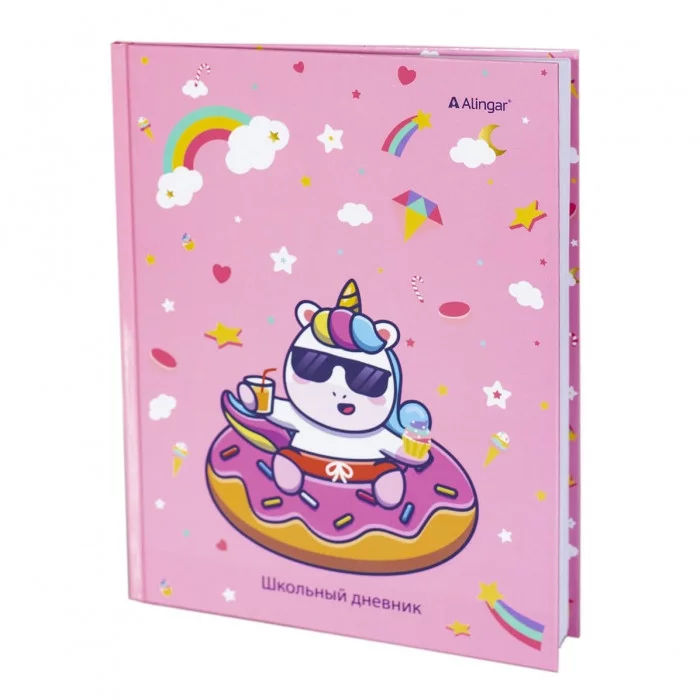 Дневник школьный Alingar 1-11 кл., 40л., 7БЦ, глянцевая ламинация, 17, 0 см. * 21, 6 см, Единорожка" 98755