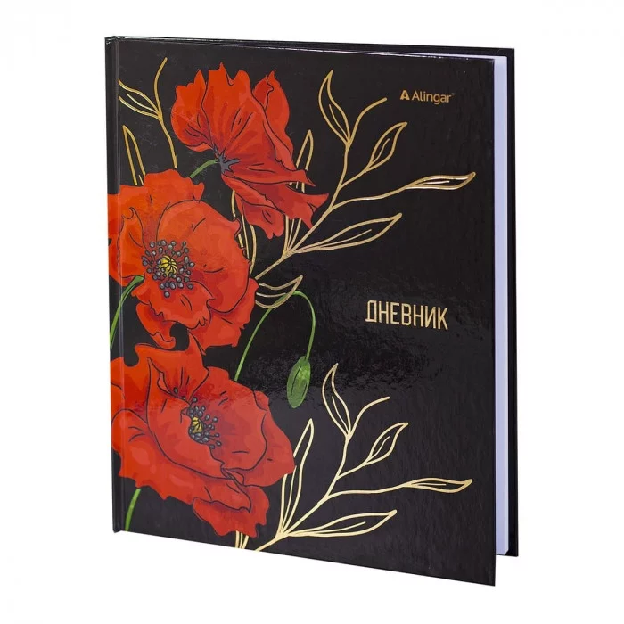 Дневник школьный Alingar 1-11 кл., 40л., 7БЦ, глянцевая ламинация, тиснение фольгой "Золото",17,0 см. * 21,6 см, "Маки" 98774