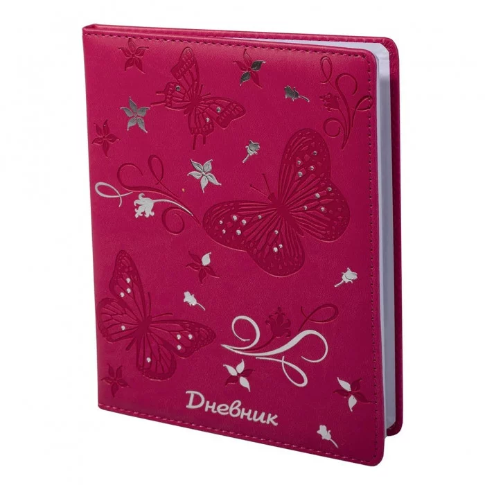 Дневник школьный Alingar 1-11 кл., 48л., 7БЦ, иск.кожа, поролон, тиснение фольгой "серебро, малиновый, "Butterfly Pink" 79518