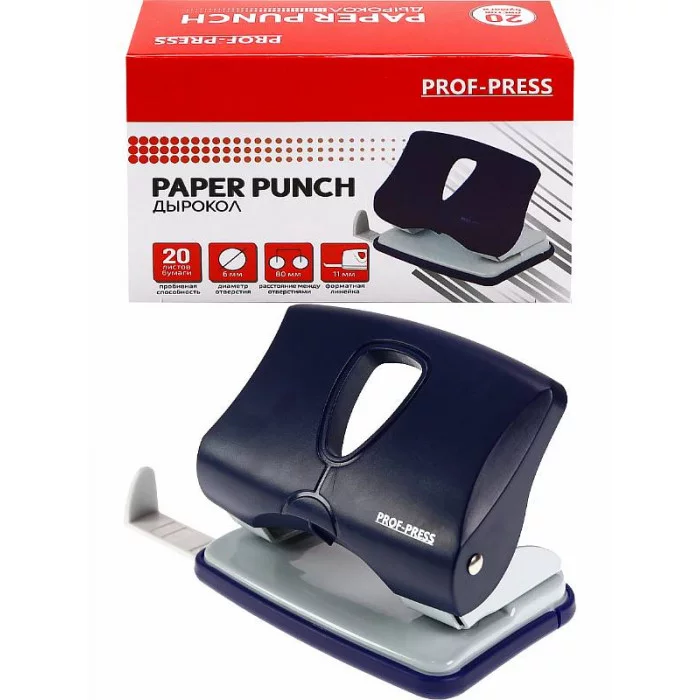 Дырокол (ДР-2780), на 20л., пластик./к в карт. коробке, т.синий ДР-2780