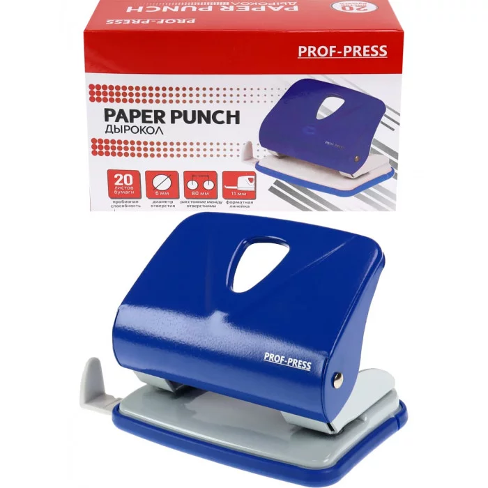 Дырокол (ДР-2788), на 20л., метал./к в карт. коробке, синий (василек) ДР-2788