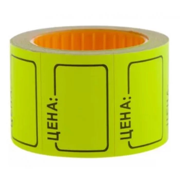 Ценник-лента. В упаковке 5 роликов по 200 штук. Размер наклейки - 3,5х2,5 см. Цвет - желтый.