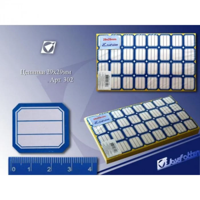 Ценники лист, 29х29мм,32шт на листе,самокл.,цена за 1 лист синие J.O. Разбор37314