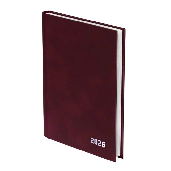 Классический датированный ежедневник на 2026 год формата А5 – незаменимый помощник для планирования встреч, звонков, переговоров. Твёрдая прошитая книжная обложка с прямыми уголками, покрытая бумвинилом бордового цвета с тиснением серебряной фольгой, придает ежедневнику надежность и практичность. Внутренний блок состоит из 168 листов офсетной бумаги плотностью 60 г/м2, белизной 100 % и печатью в 1 краску. Ежедневник представлен в размере 135*206 мм. Формат А5 удобен в использовании как в офисе, так и деловых поездках.