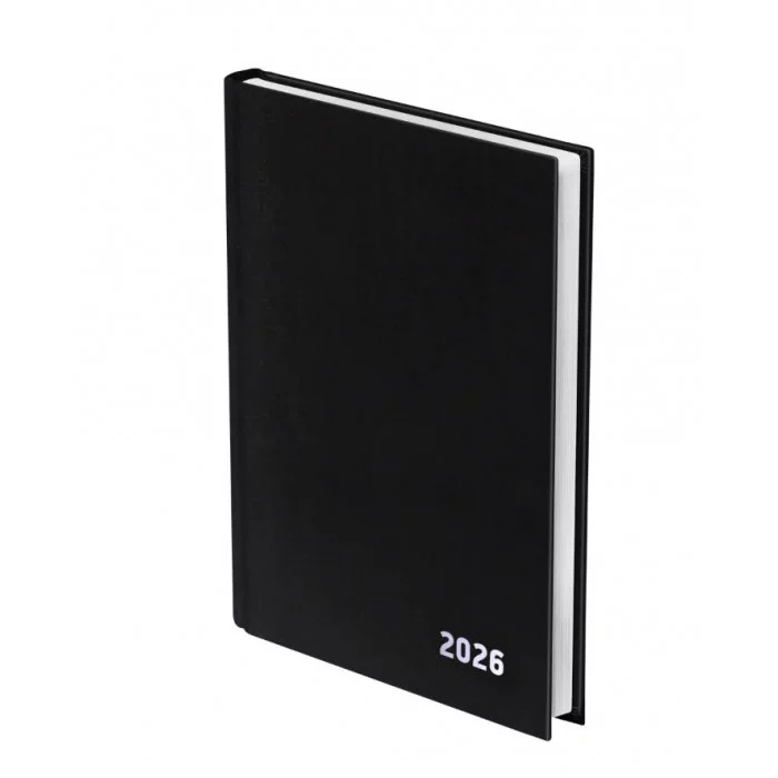 Классический датированный ежедневник на 2026 год формата А5 – незаменимый помощник для планирования встреч, звонков, переговоров. Твёрдая прошитая книжная обложка с прямыми уголками, покрытая бумвинилом черного цвета с тиснением серебряной фольгой, придает ежедневнику надежность и практичность. Внутренний блок состоит из 168 листов офсетной бумаги плотностью 60 г/м2, белизной 100 % и печатью в 1 краску. Ежедневник представлен в размере 135*206 мм. Формат А5 удобен в использовании как в офисе, так и деловых поездках.