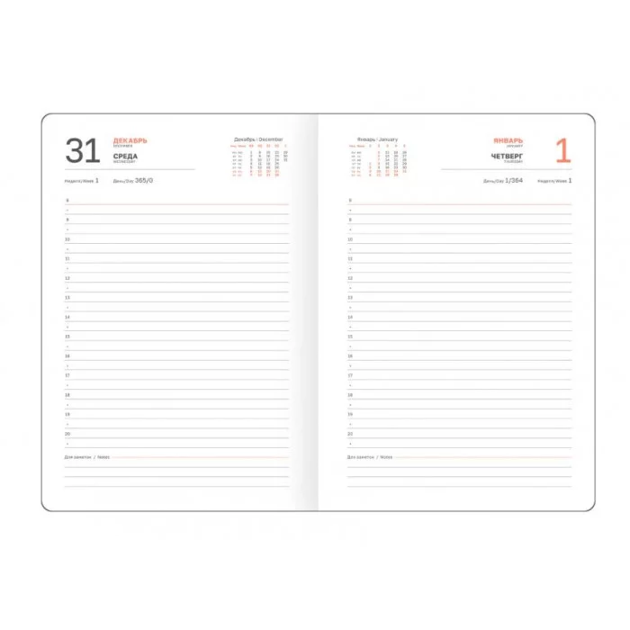 Перфорированные уголки и закладка-ляссе обеспечат комфорт и удобство при использовании. В ежедневнике предусмотрена справочная информация, ежемесячный планер, календарь и другие полезные сведения. Индивидуальная упаковка в термоусадочную пленку.