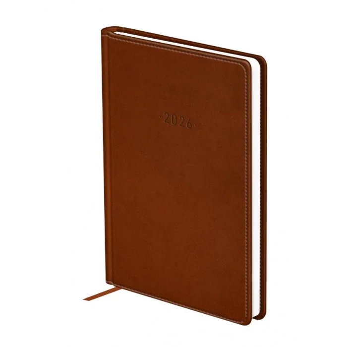 Элегантный датированный ежедневник на 2026 год BG формата А6 серии серии Winner в твёрдой обложке коричневого цвета, выполненной из высококачественной экокожи с гладкой матовой поверхностью и поролоновой прослойкой. Внутренний блок состоит из 176 листов белой офсетной бумаги плотностью 70 г/м2 с печатью в 2 краски. Датированный ежедневник представлен в размере 105*145 мм.