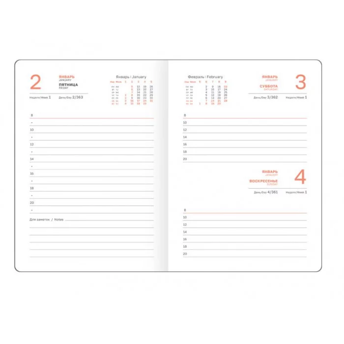 Перфорированные уголки и закладка-ляссе обеспечат комфорт и удобство при использовании ежедневника. В ежедневнике предусмотрена справочная информация, таблицы, календарь на 4 года и другие полезные сведения. Датированный ежедневник подходит под персонализацию. Индивидуальная упаковка в термоусадочную пленку.