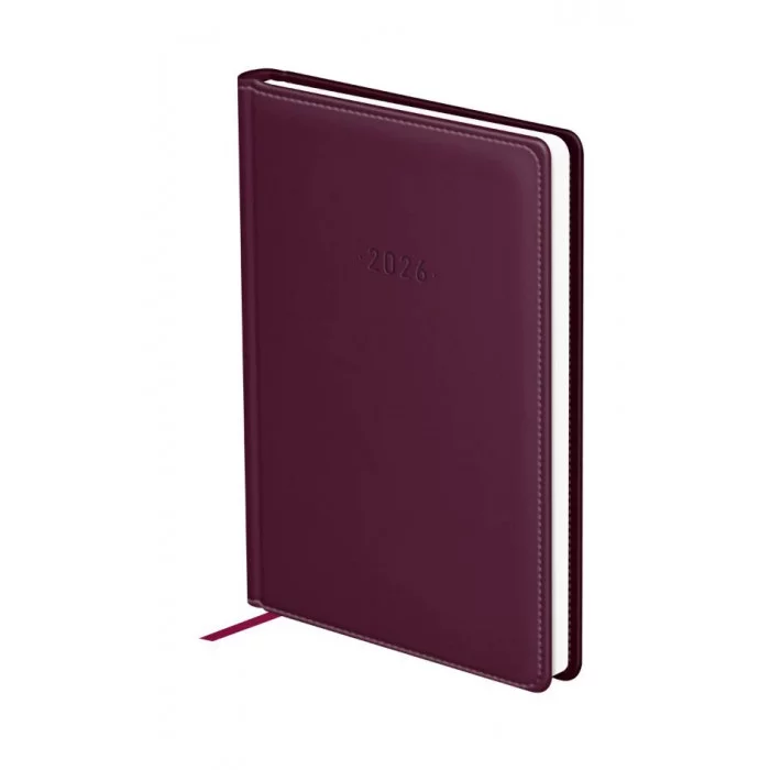 Элегантный датированный ежедневник на 2026 год BG формата А6 серии серии Winner в твёрдой обложке цвета бургунди, выполненной из высококачественной экокожи с гладкой матовой поверхностью и поролоновой прослойкой. Внутренний блок состоит из 176 листов белой офсетной бумаги плотностью 70 г/м2 с печатью в 2 краски. Датированный ежедневник представлен в размере 105*145 мм.