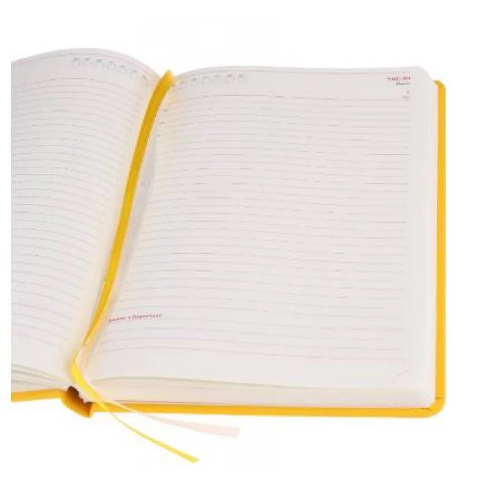 У каждого из нас есть планы на день. А если их много, то лучше их записать. Выразительный дизайн, удобный формат А5, цветная ламинированная обложка выполнена из кожзама с тиснением и дополнительной обработкой "софт-тач", внутренний блок: 136 листов. Недатированный. Цвет: жёлтый.