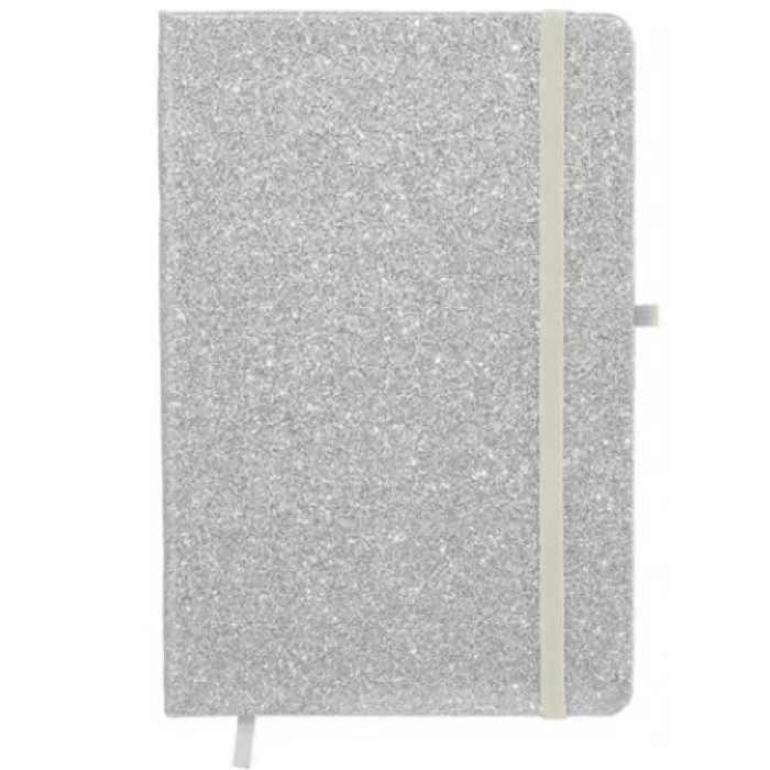Ежедневник-блокнот: на резинке, твёрдая обложка-алмазная крошка, цветная /ассорти/, блок-клетка (прошитый), 80 листов; 21*14,5 см.