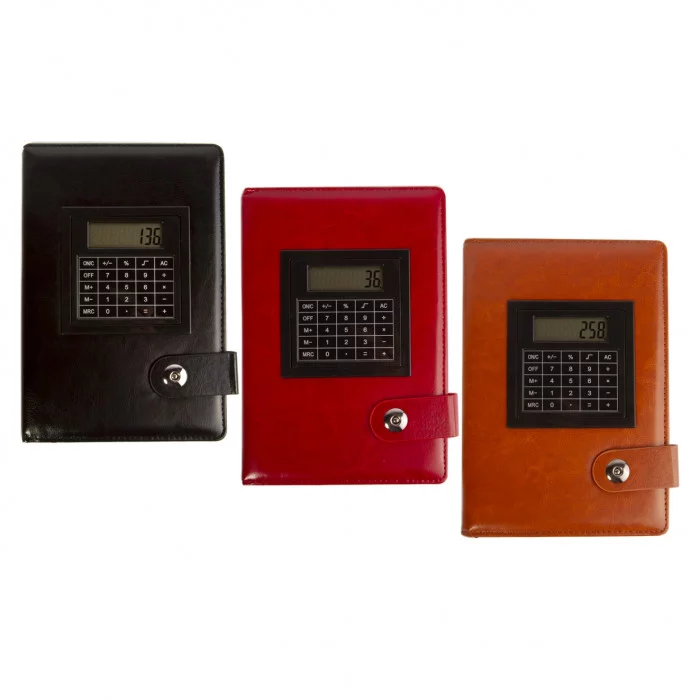 Ежедневник недатированный с калькулятором, А5, Alingar, 7БЦ, иск. кожа, ляссе, магн. клапан, ассорти, цв. внутр. блок, линия, 120 л.