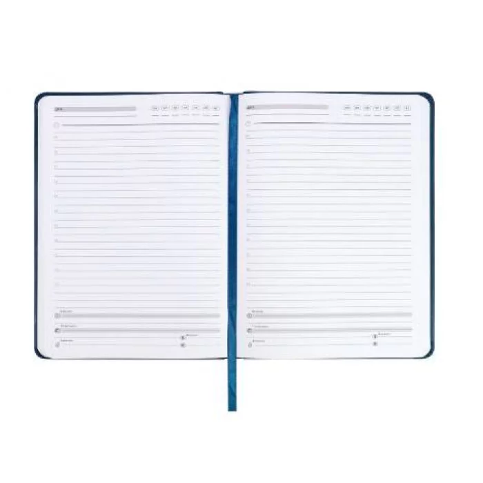 У каждого из нас есть планы на день. А если их много, то лучше их записать. Лаконичный дизайн, удобный формат А5, пухлая обложка: кожзам, внутренний блок: 128 листов. Цвет: синий. Недатированный.