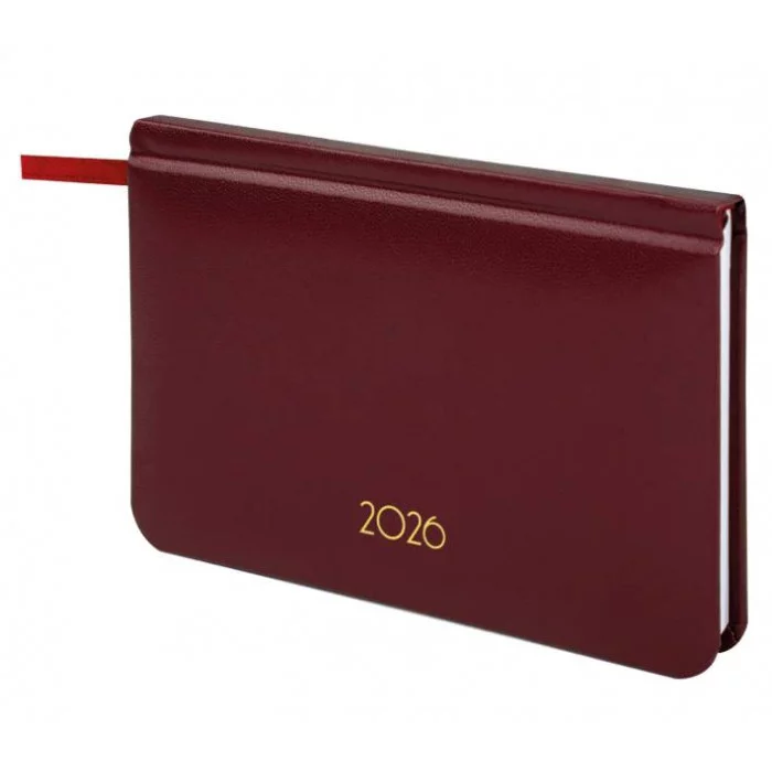 Еженедельник датированный 2026, МАЛЫЙ ФОРМАТ 95х155 мм, А6, BRAUBERG "Select", балакрон, бордо, 117194