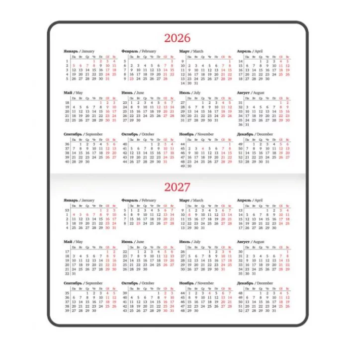 Дополнением является закладка-ляссе, с помощью которой при необходимости можно быстро открыть еженедельник на нужной странице. В конце внутреннего блока есть 7 страниц для записей и заметок. Обширный справочный материал расширяет функциональность еженедельника.