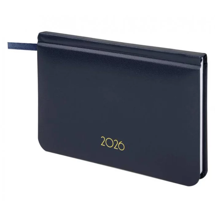 Еженедельник датированный 2026, МАЛЫЙ ФОРМАТ, 95х155 мм, А6, BRAUBERG "Select", балакрон, темно-синий, 117192