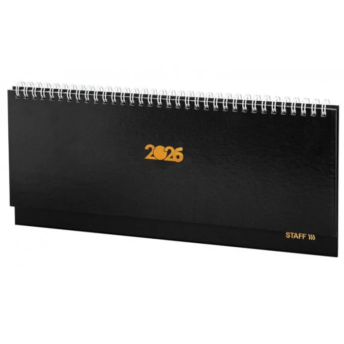 Планинг датированный 2026 300х130 мм, STAFF, гребень, обложка бумвинил, 64 л., черный, 117360
