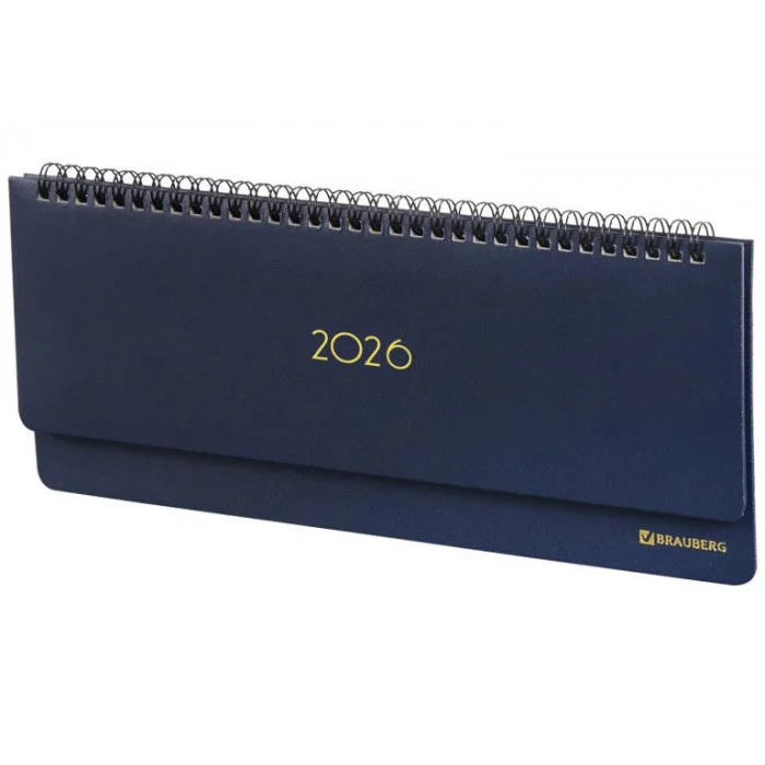 Планинг датированный 2026 305х140 мм BRAUBERG "Select", под кожу, темно-синий, 117231