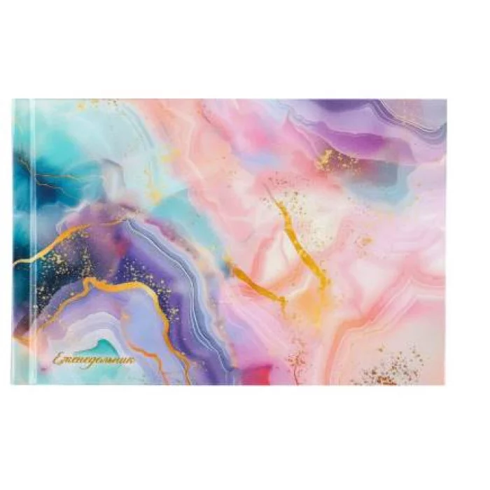 Еженедельник А6 64л. МРАМОРНЫЙ УЗОР (64-9976) 7БЦ, глянц. лам. горизонтальный, недатиров. 64-9976