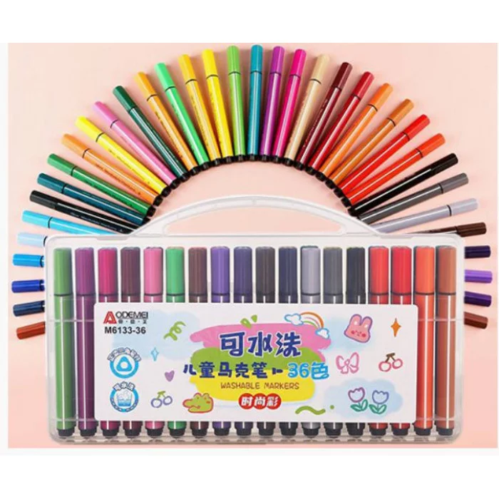 Фломастеры 36 цв. DI-336 Смываемые, 2 мм, пулевидный, 3хгранный корпус, в пластиковом футляре M6133-36 332171