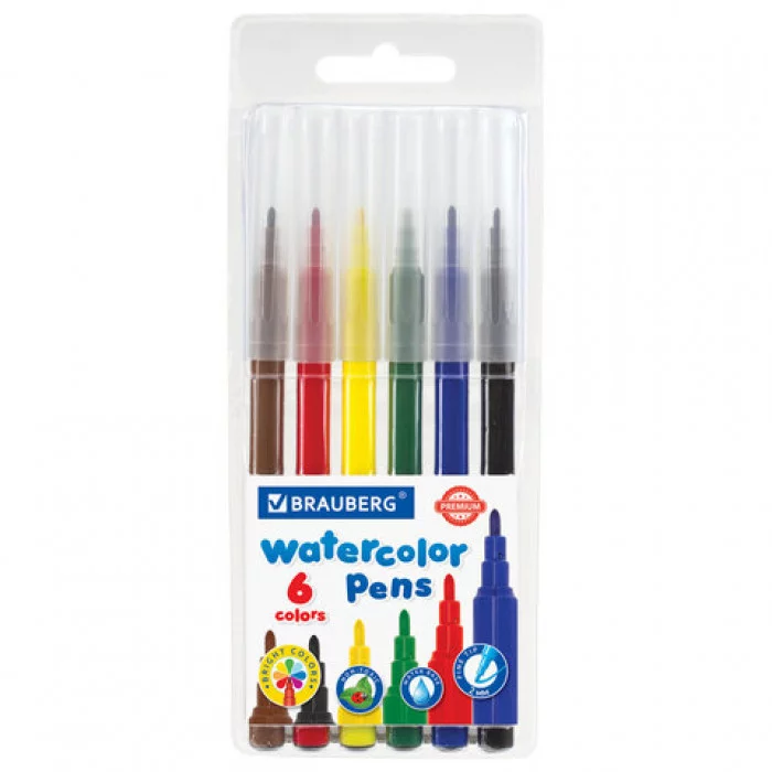 Фломастеры BRAUBERG "PREMIUM", 6 цветов, КЛАССИЧЕСКИЕ, вентилируемый колпачок 151933