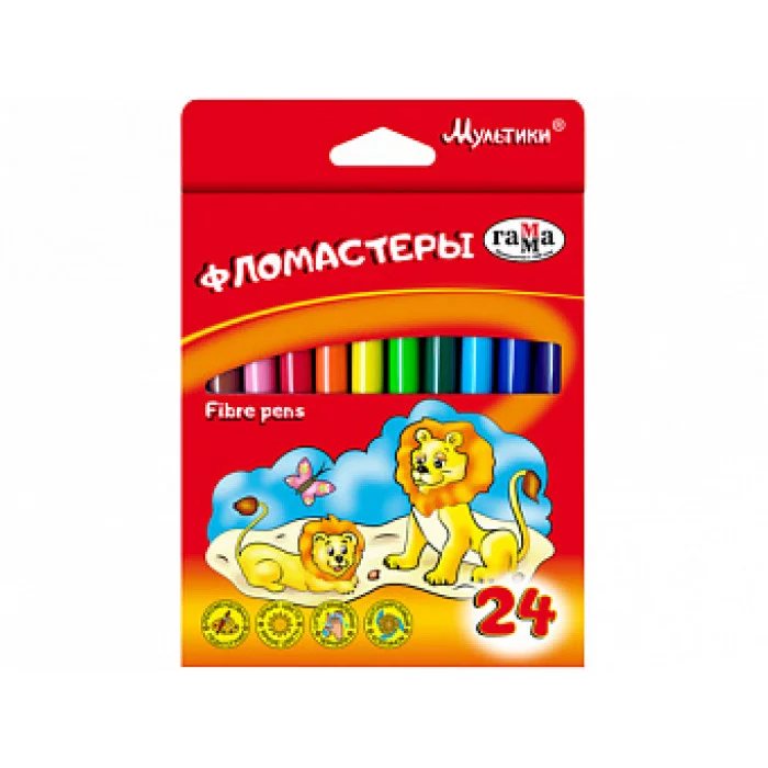 Фломастеры Гамма "Мультики", 24цв., смываемые, картон. упаковка, европодвес 286578