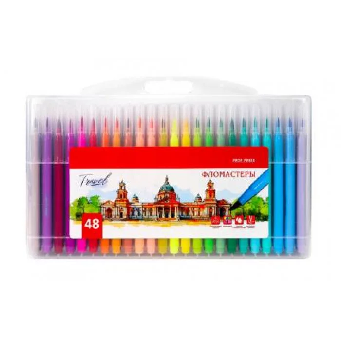 Фломастеры с кисточкой с вентилир. колпачком 48шт. TRAVEL (ФЛ-7650), жёсткий кейс, ФЛ-7650