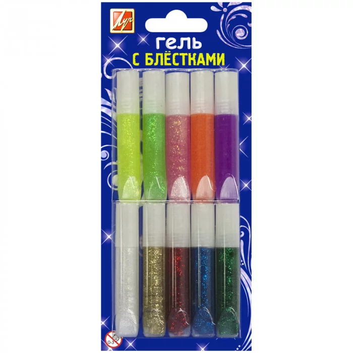 Гель с блестками Блеск 10 цв,(по 5 мл.) Луч 106742