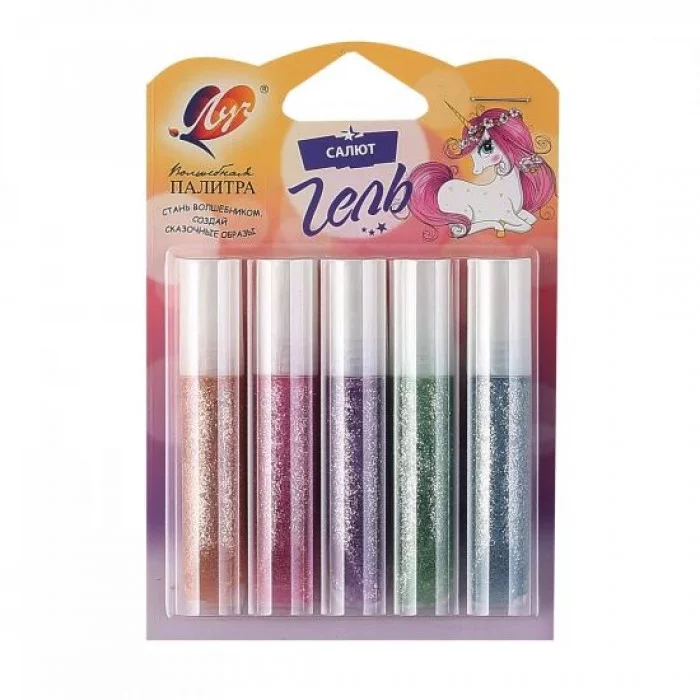 Гель с блестками Луч ассорти 5 цв. 5 мл с европодвесом 219619