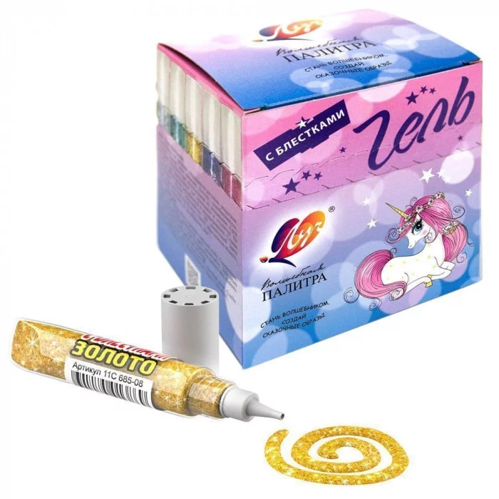 Гель "Блеск" предназначен для придания необычных переливающихся эффектов, легко наносится на любую поверхность, при высыхании становится прозрачным, оставляя блестки. Используется для украшения рисунков, открыток, поделок из глины, гипса, воска, солёного теста, фольги, стекла и т.п. Время высыхания геля зависит от толщины слоя.