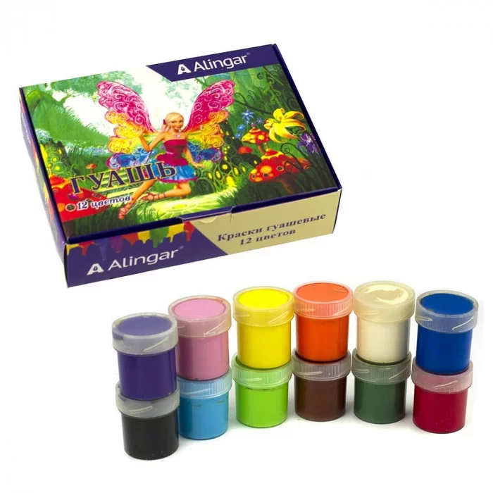 Гуашь Alingar карамельная, 12 цветов, 20 мл., картонная упаковка, "Фея" AL7265