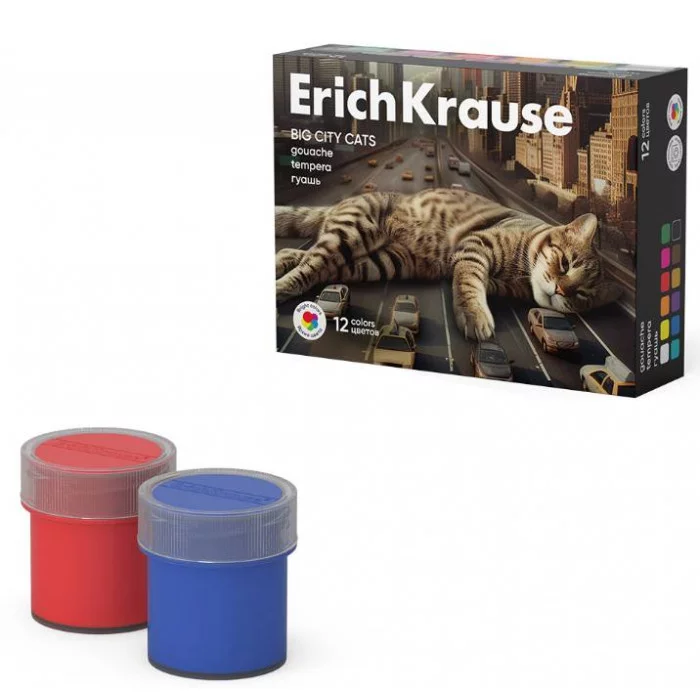 Гуашь ErichKrause Big City Cats 12 цветов по 20 мл 62982