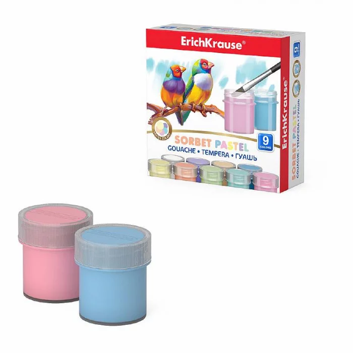 Гуашь ErichKrause Sorbet Pastel 9 цветов по 20 мл 55444