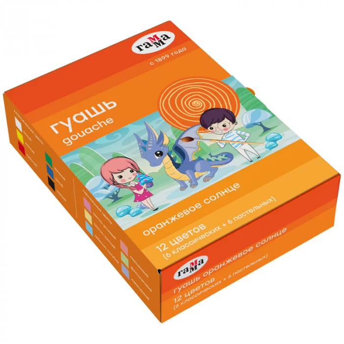 Гуашь Гамма "Оранжевое солнце", 12 цветов (6 пастельн.+ 6 классич.), картон. упаковка 341254