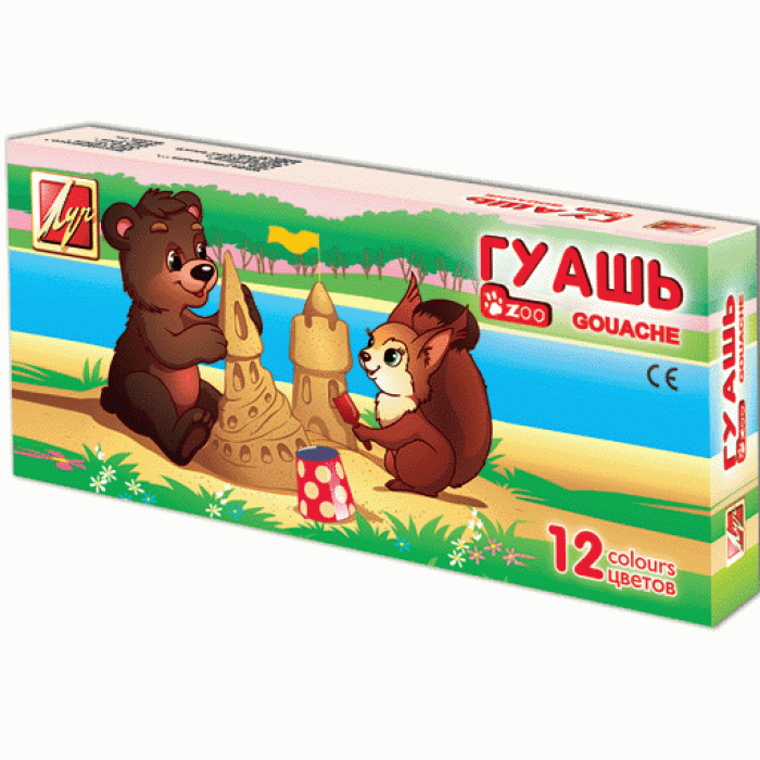 Гуашь ZOO 15 мл, 12 цветов в блок-таре — прекрасный выбор для начинающих и профессионалов. Современные нетоксичные материалы хорошо ведут себя в эксплуатации, помогут вам добиться успеха в творчестве.