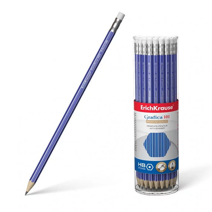 Чернографитный шестигранный карандаш с ластиком 1шт ErichKrause Grafica 101 HB 45613