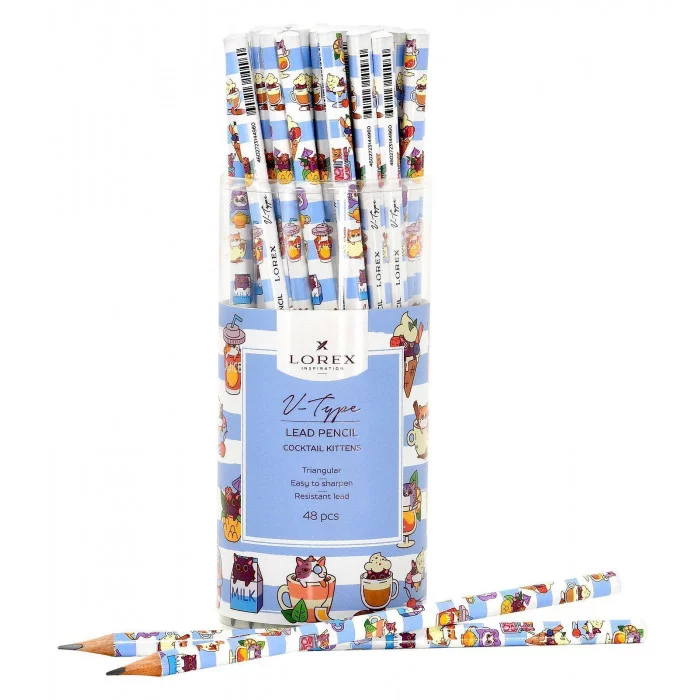 Карандаш чернографит. дерев. LOREX V-TYPE COCTAIL KITTENS НВ заточенный трехгранный тубус принт на к 220875