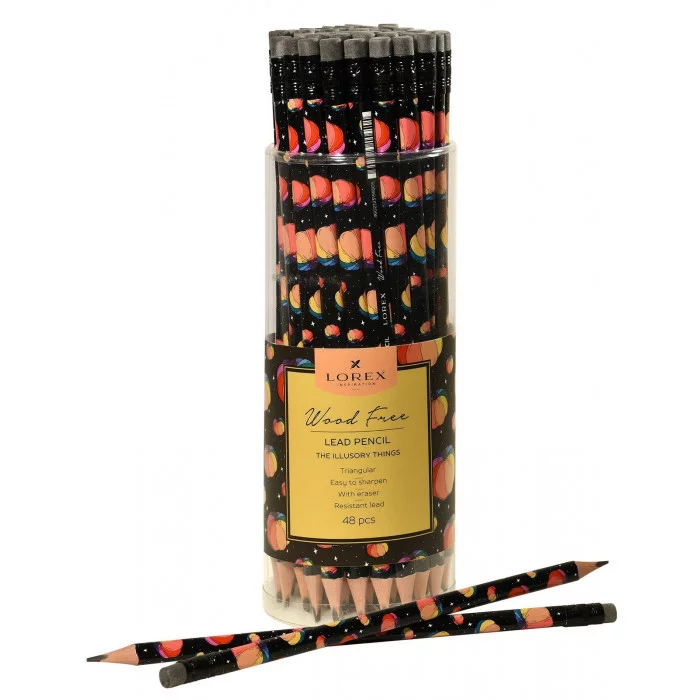 Карандаш чернографит. пластик LOREX WOOD FREE THE ILLUSORY THINGS НВ заточенный трехгранный с ластиком тубус принт 236977