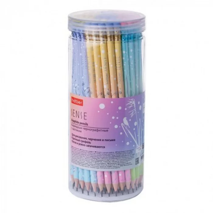 Карандаш чернографитн. Hatber круглый корпус Sense Ассорти "HB" с ластиком с заточ.