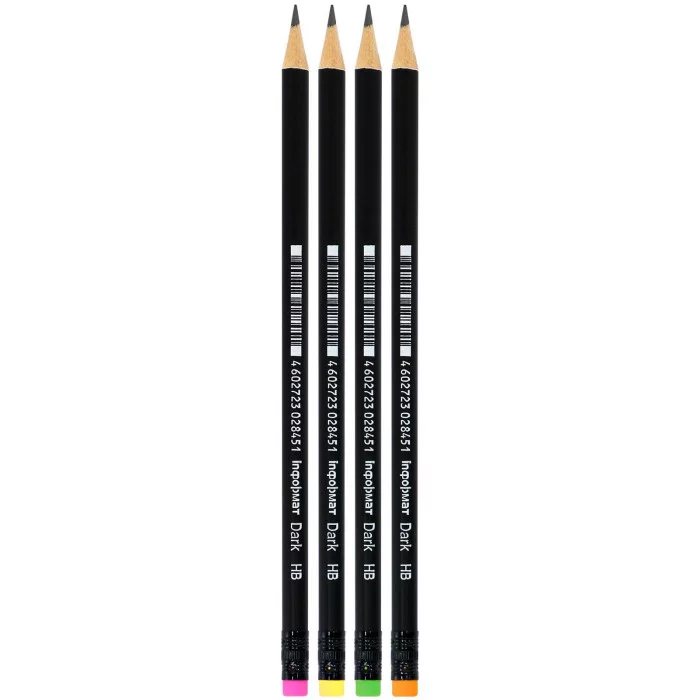 Карандаш чернографитный корпус дерев. INFORMAT Dark НВ с ластиком заточенный круглый тубус принт на корпусе 062086