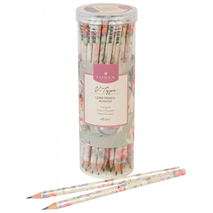 Карандаш чернографитный, корпус дерев. LOREX V-TYPE BLOSSOMS НВ заточенный трехгранный тубус принт на корпусе 251075