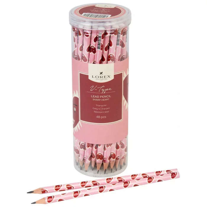 Карандаш чернографитный, корпус дерев. LOREX V-TYPE SHARP HEART НВ заточенный трехгранный тубус принт на корпусе 251073