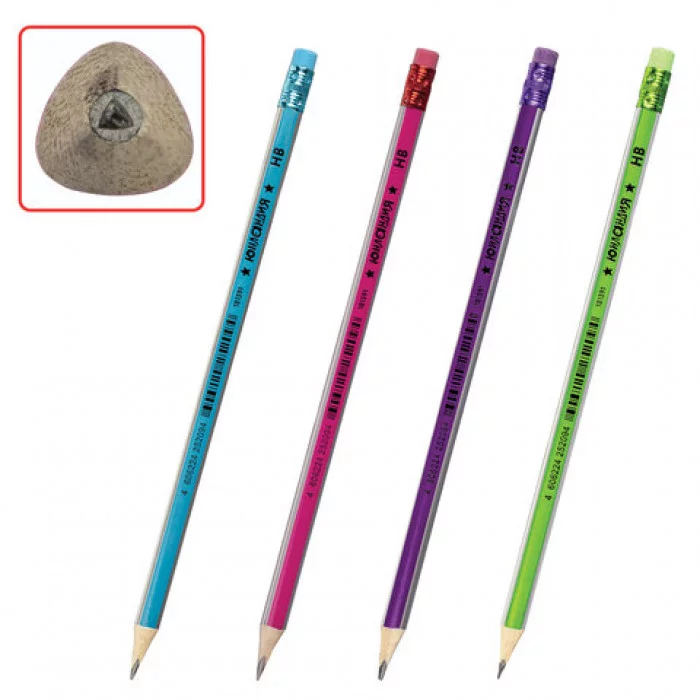 Карандаш чернографитный ЮНЛАНДИЯ, 1 шт., "Трехгранная Серия", НВ, корпус ассорти, с резинкой, 181591