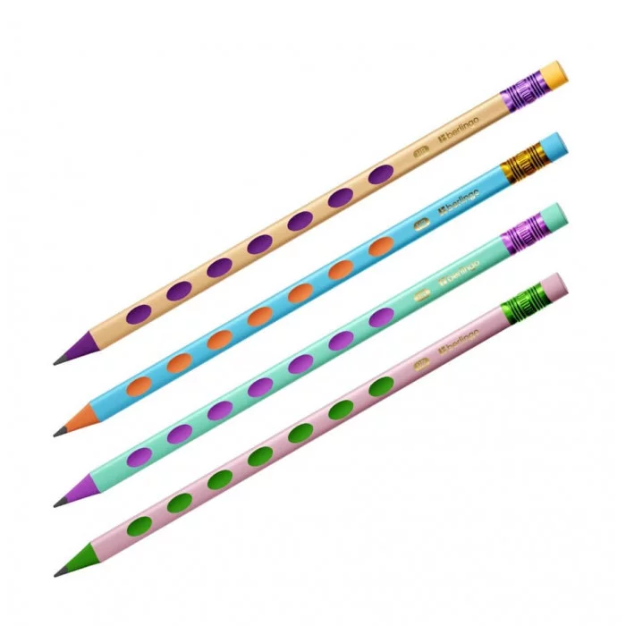 Карандаш ч/г Berlingo "Metallic Ergo" HB, пластиковый, трехгранный, с выемками, заточен., с ластиком, PET-бокс 363755