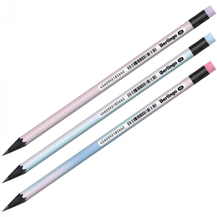 Чернографитный ударопрочный карандаш Berlingo "Shade" из черного дерева, с заточкой и ластиком. Матовое покрытие корпуса, дизайны ассорти. Не ломается при падении. Подходит для черчения и рисования. Диаметр грифеля 2,2 мм, твердость HB, круглая форма, штрих-код на корпусе.