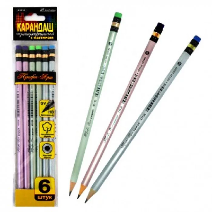 Карандаш ч/г дерево 43136 "Профи-Арт" круглые, заточ, c ласт. HB