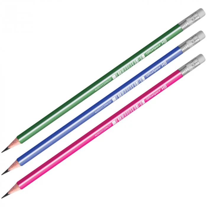 Карандаш ч/г OfficeSpace, HB, трехгран., заточен., пластиковый, с ластиком, корпус ассорти с полоской 269151
