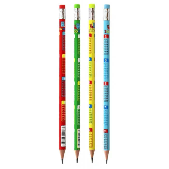 Карандаш ч/г Zoomi HB дерево с ластиком круглый заточенный яркий корпус 4 дизайна"Таблица умножения" ZM500