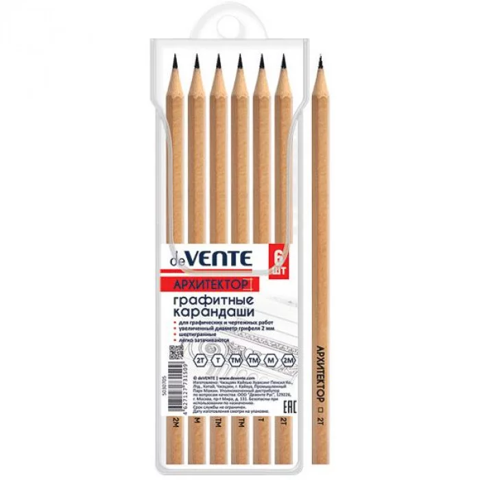 Карандаши чернографитные в наборе 06шт 2H-2B "Архитектор" пласт упак е/п DEVENTE 5030705 097448
