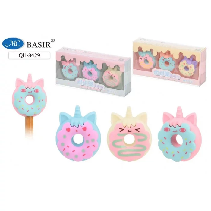 Ластик /насадка для карандаша/: "ПОНЧИК mini"; выполнен в форме пончика-единорожки с рисунком (диаме QH-8429